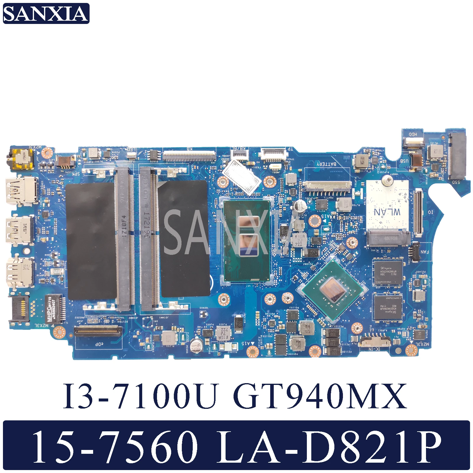 amazing KEFU LA-D821P Laptop motherboard for Dell Inspiron 15-7560 14-7460 original mainboard I3-7100U GT94