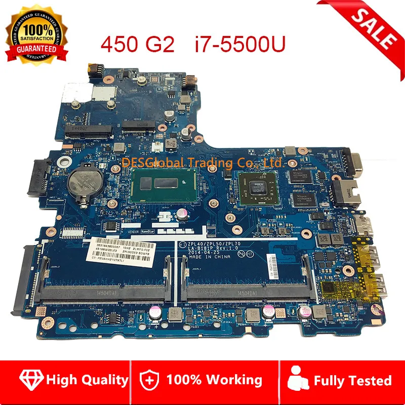 lower price For HP Probook 450 G2 Laptop Motherboard With i7-5500U Mainboard R5 M255 LA-B181P 2GB GPU 799562-60